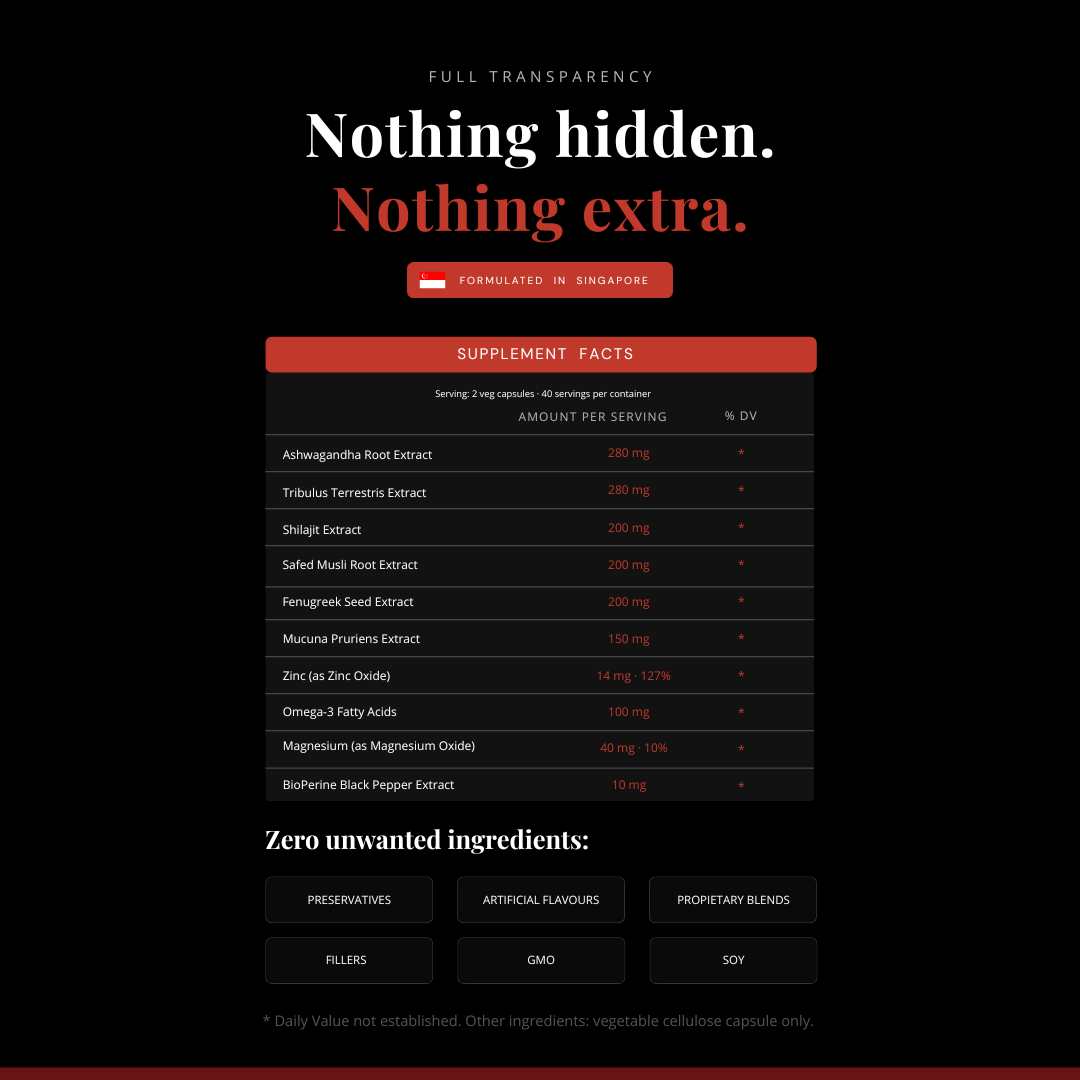 Stronger sets. Faster recovery. That fire you thought was gone? Ashwagandha and Tribulus just needed to catch up with your ambition.